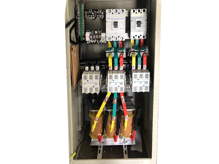 該電柜采用電機啟動時加進相電容的啟動方式,所以大大提高了電機啟動時的功率因數,一般啟動困難、難啟動的電機,采用此種啟動方式要容易得多,并且電機運行時功率因數增加,減少了損耗,降低了生產成本。