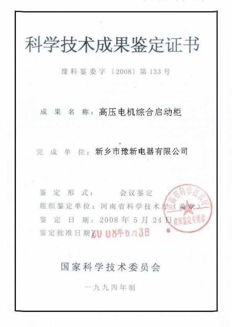 企業有高新科技人員,為新鄉市電機啟動柜研究中心,GG1A型﹑KYN28-10KV高壓配電柜、高壓液體啟動柜曾獲國家適用新型專利,專利號ZL2006200324849